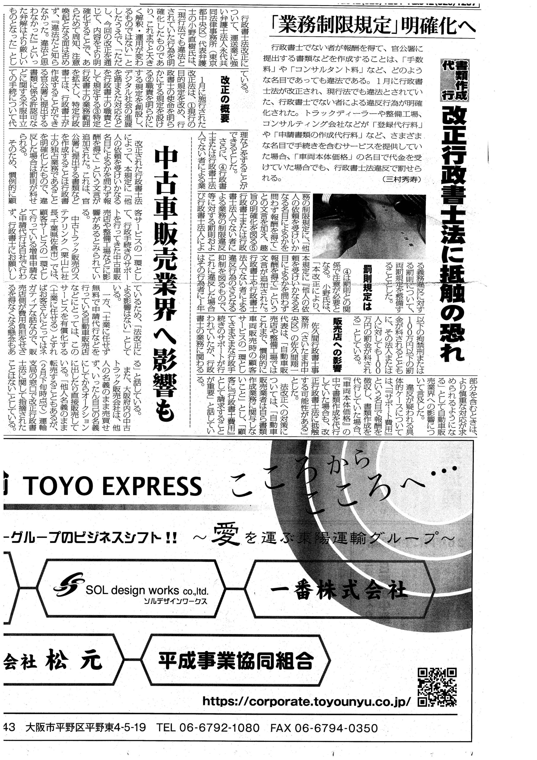 物流ウィークリーに代表弁護士・小野直樹のコメントが掲載されました(行政書士法改正に関するもの)